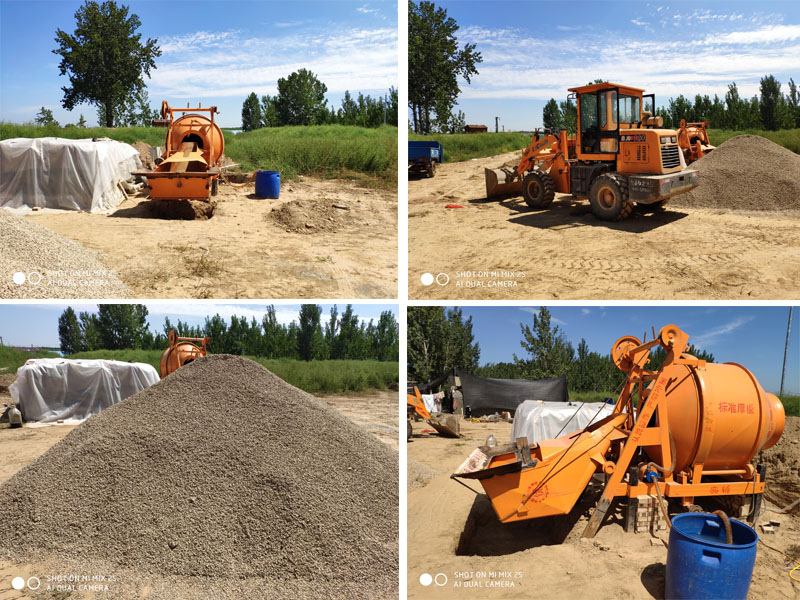 使用滾筒攪拌機(jī)制造混凝土,三輪車?yán)稀R驗(yàn)閳?chǎng)地的原因,客戶只能使用農(nóng)用三輪車?yán)希斯ど狭稀:迷诳蛻舻乃?guī)格不大。